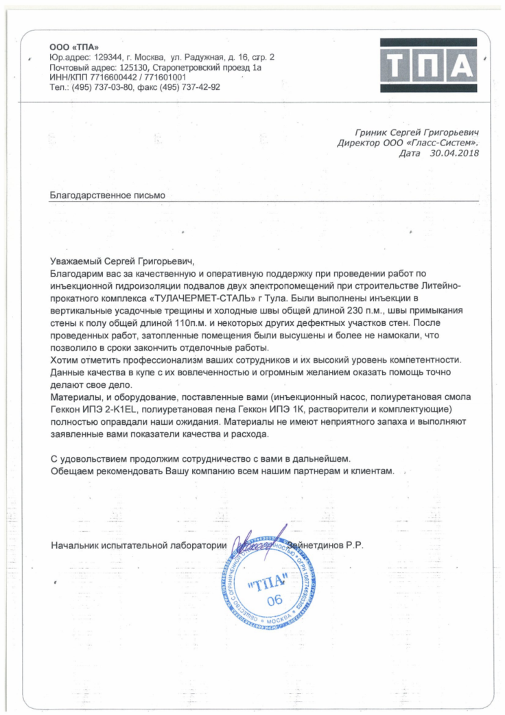 • Наша линейка инъекционной гидроизоляции доказала эффективность на множестве объектов по всей стране